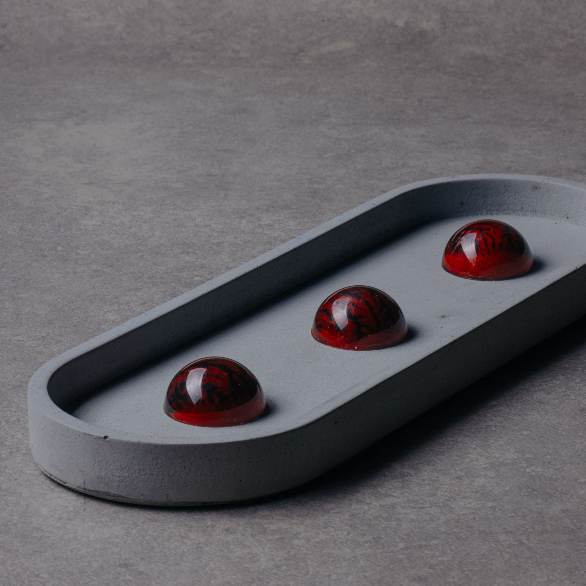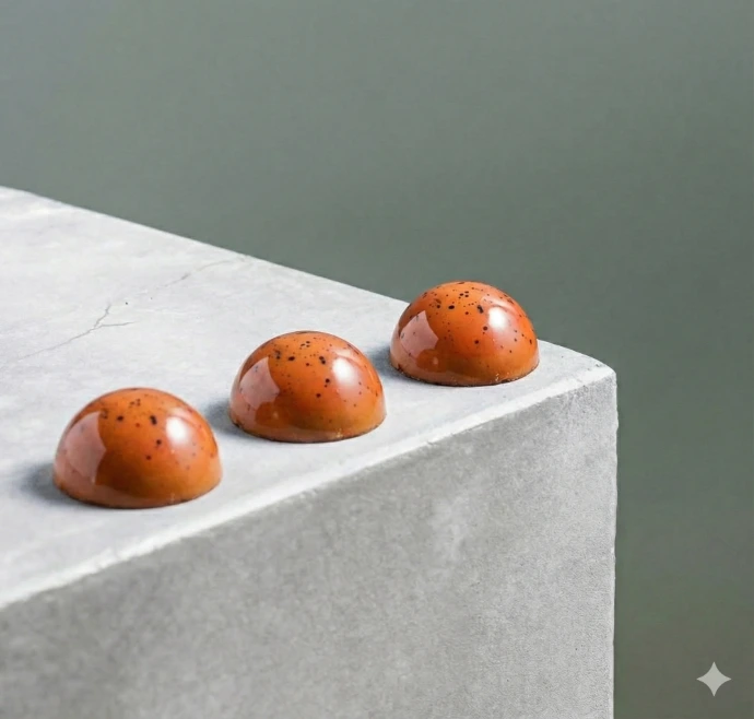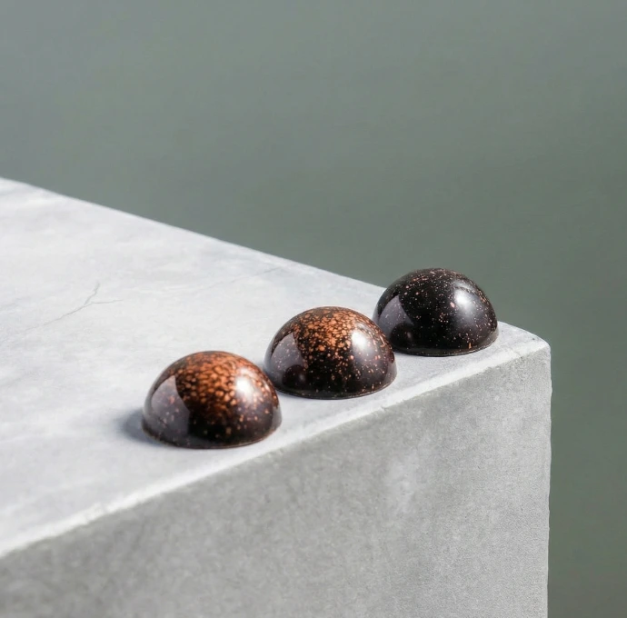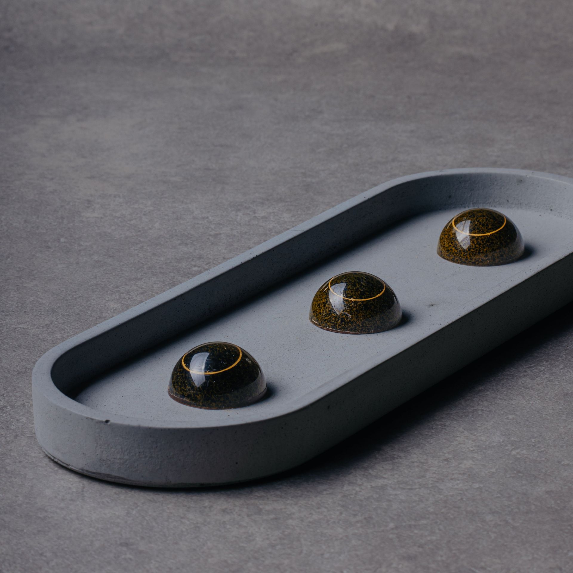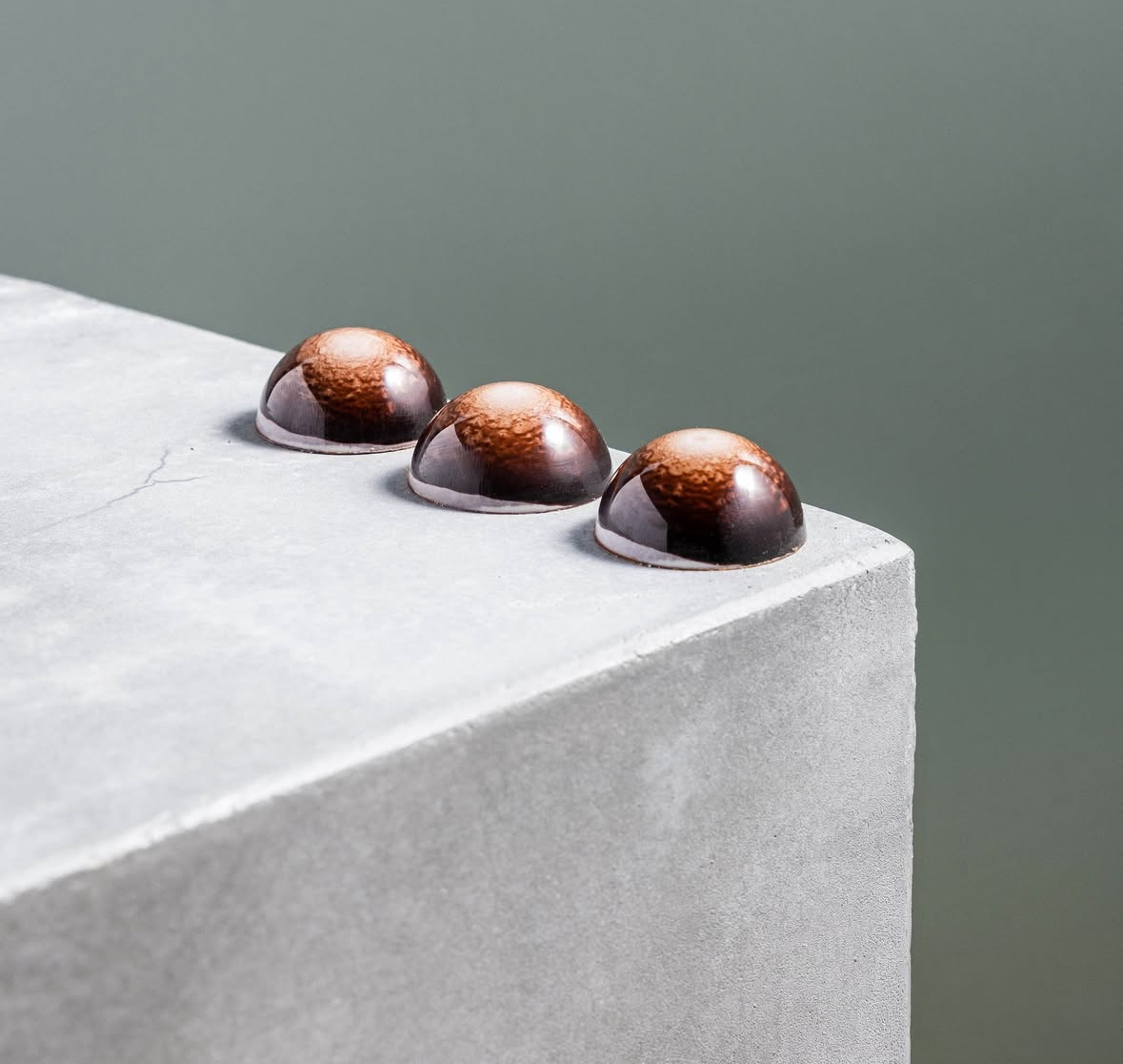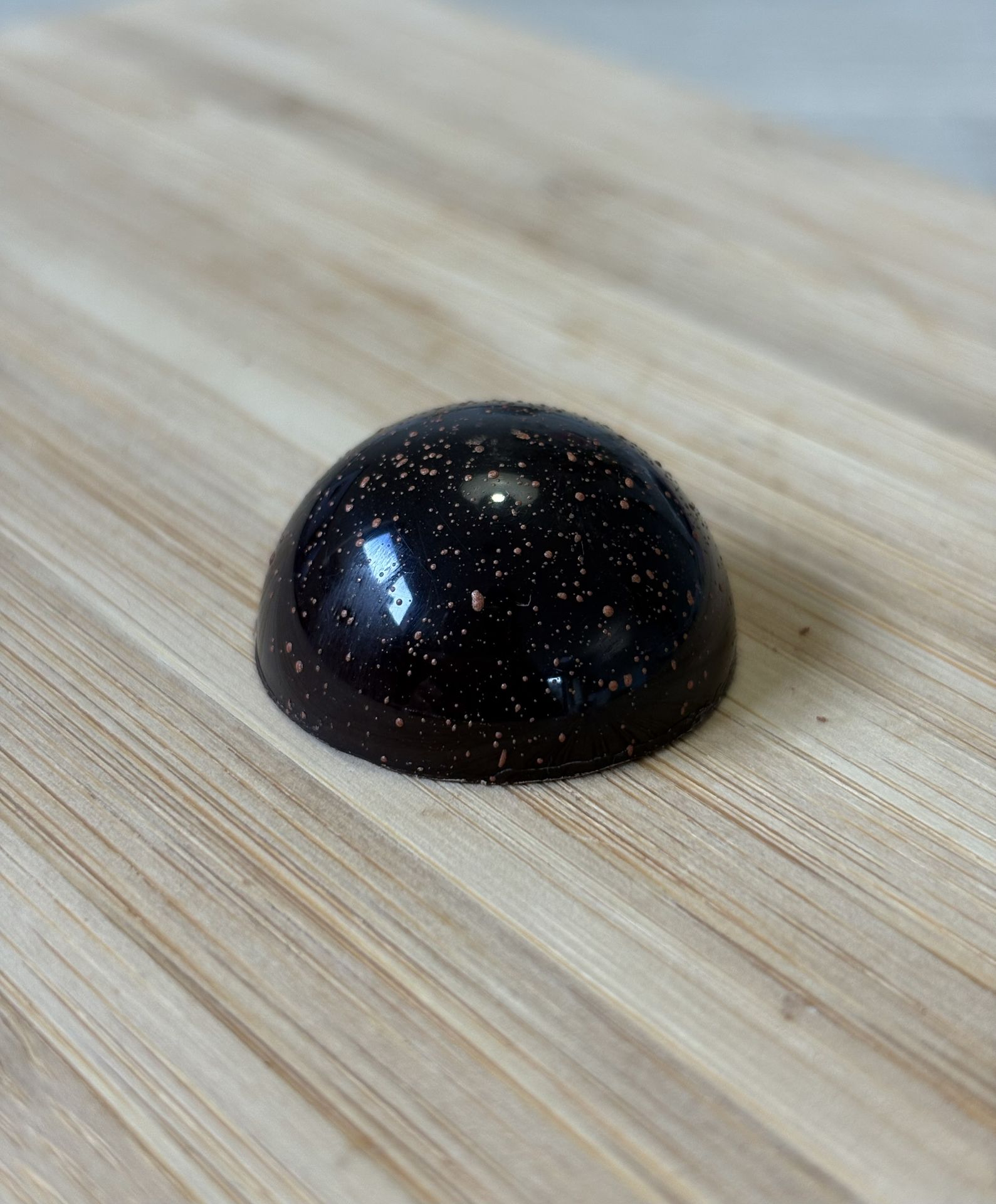 Voor deze bonbon gebruiken we donker gebrande boter, verwerkt tot een krokante laag en een stroperige karamel. De smaak is diep, karamelachtig met een geroosterde notensmaak.