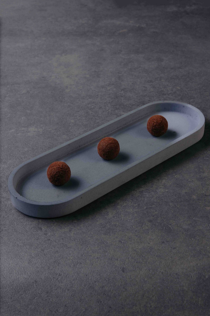 Zijn creaties zijn nauw verweven met de natuur in de omgeving. De vruchten, kruiden, noten en specerijen die worden verwerkt, plukt hij met zorg in de directe omgeving.